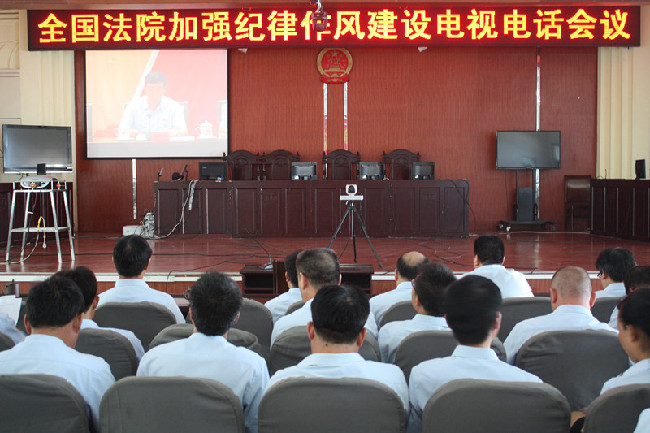 8月15日上午,河南省新野县人民法院组织干警认真收听收看全国法院加强纪律作风建设视频会议精神。
