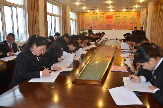 新野法院将今年定为“形象提升年”,为了全年提升全院干警的业务素质,将全院的制度汇编发放到每个干警手中,并将四大审判业务的办理程序指引上传内网,让所有参加考试干警自行下载学习。同时为了严肃考试纪律,特别邀请了两位身为中学校长的人大代表和政协委员与院监察室一起巡视考场。并选出资深老法官在人大代表和政协委员监督的情况下改卷打分。