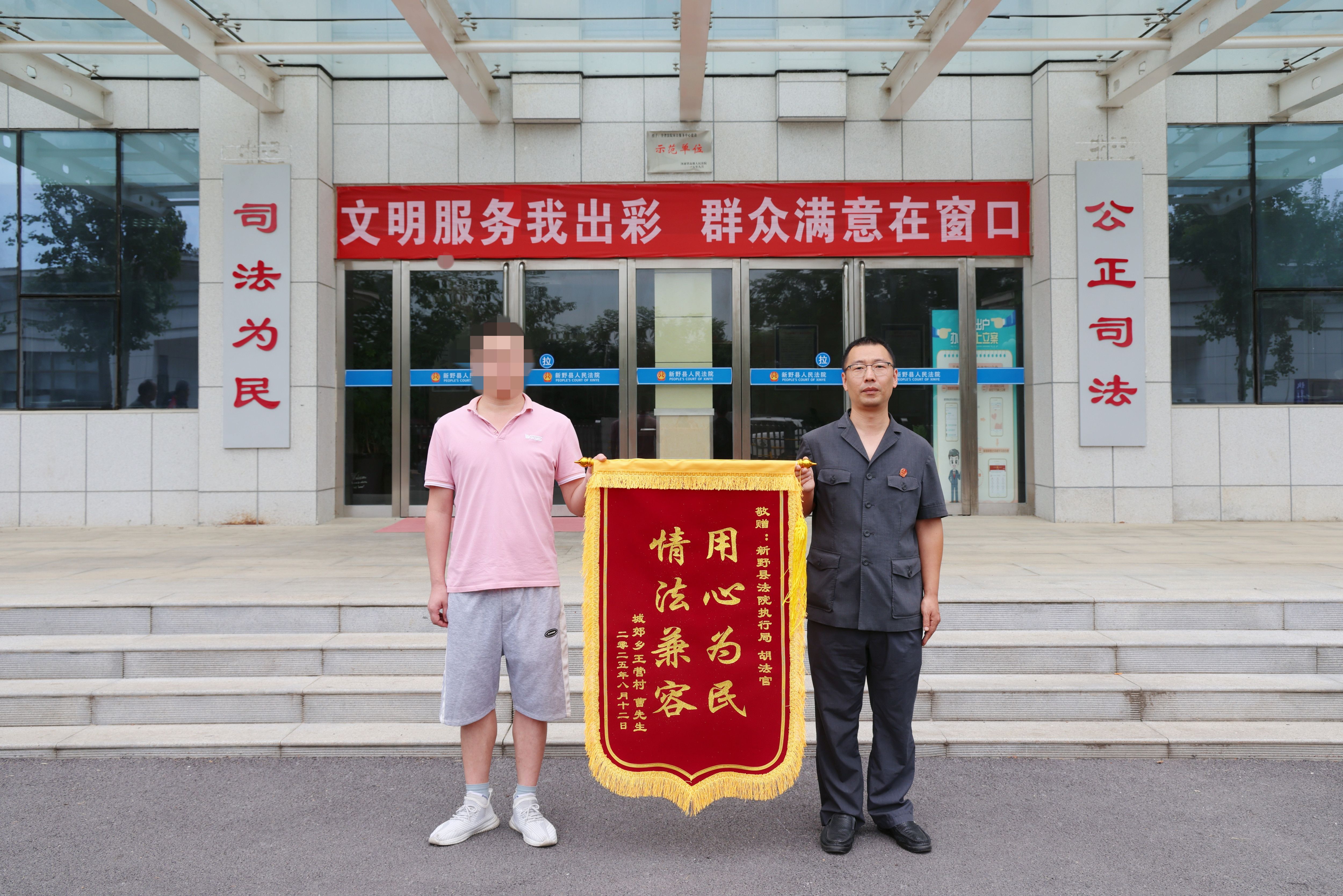 2025年8月12日,河南省新野县人民法院诉讼服务中心里,申请执行人曹某满脸感激,将一面写有“用心为民 情法兼容”的锦旗,郑重交到执行干警胡晓飞手中,连声道谢:“为了孩子的抚养费,你跑前跑后费了这么多心,我们全家都记着你的好!”这面锦旗背后,藏着一段跨越数年的抚养费执行故事,是执行干警用耐心与智慧化解矛盾的暖心写照。
