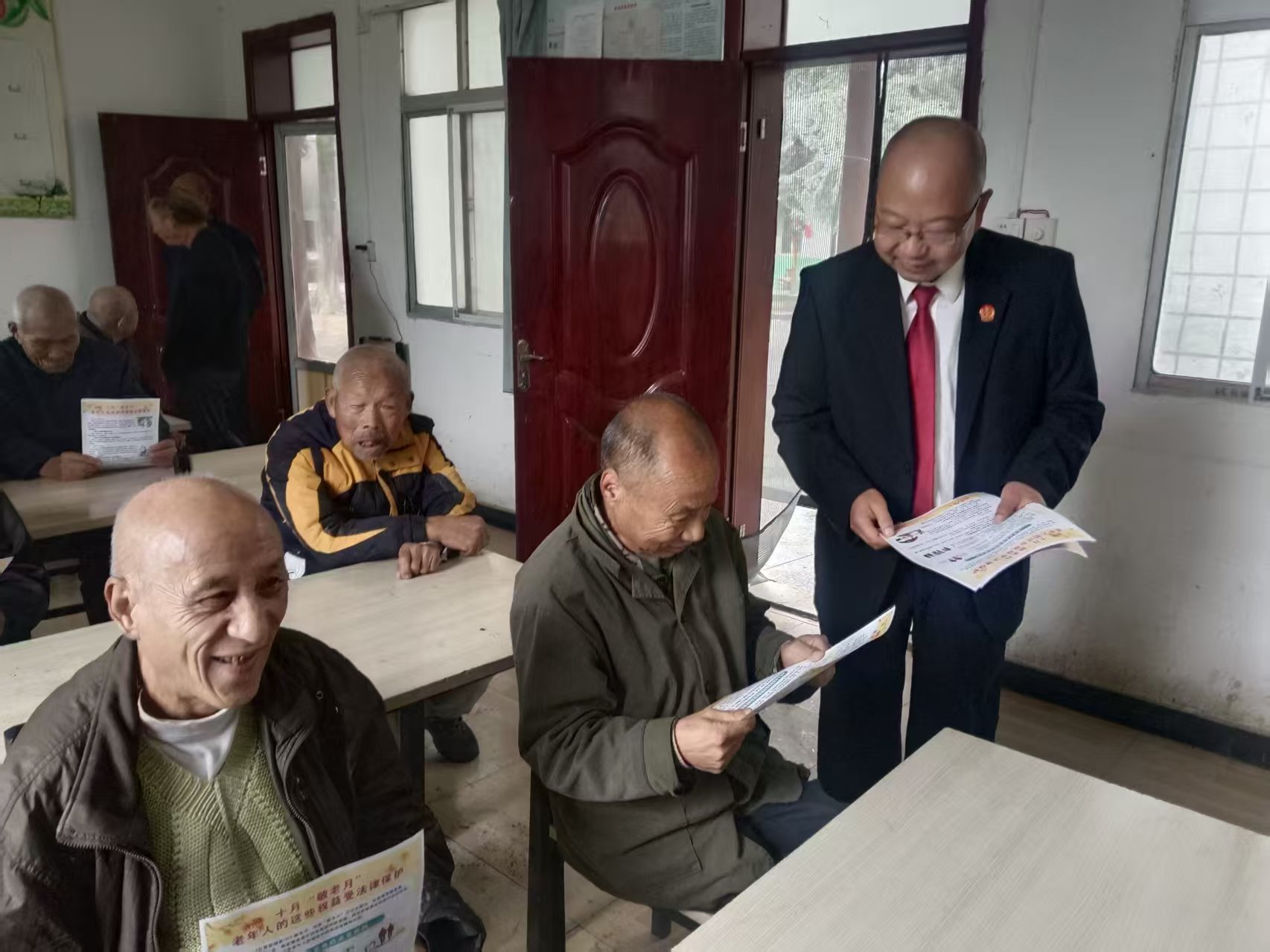 在第十六个全国“敬老月”来临之际,河南省新野县人民法院沙堰法庭于2025年9月23日组织干警走进沙堰镇敬老院,开展“关爱老人 法治相伴”主题普法宣传活动,用通俗易懂的语言为老人们送上一堂温暖实用的法律护老课。