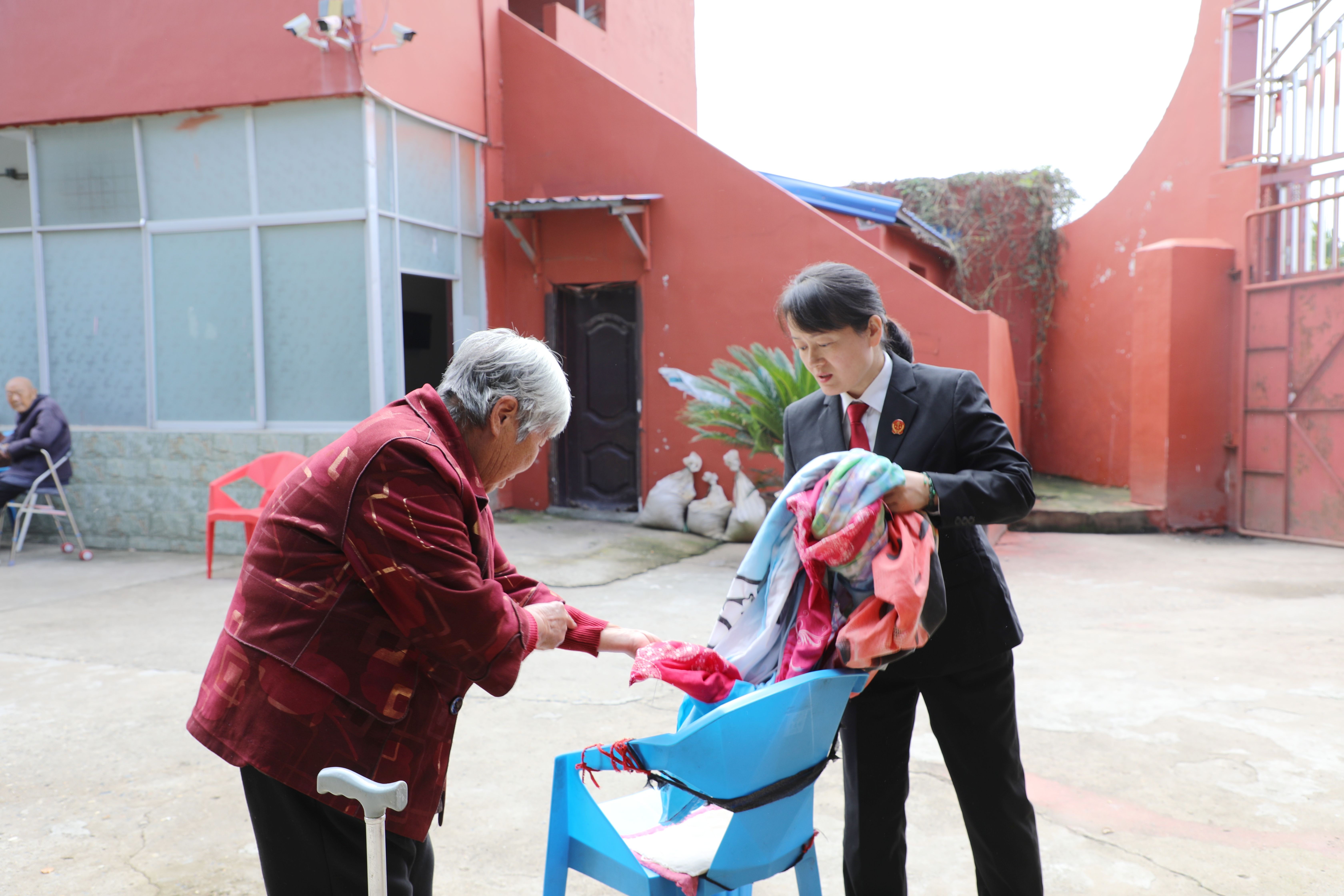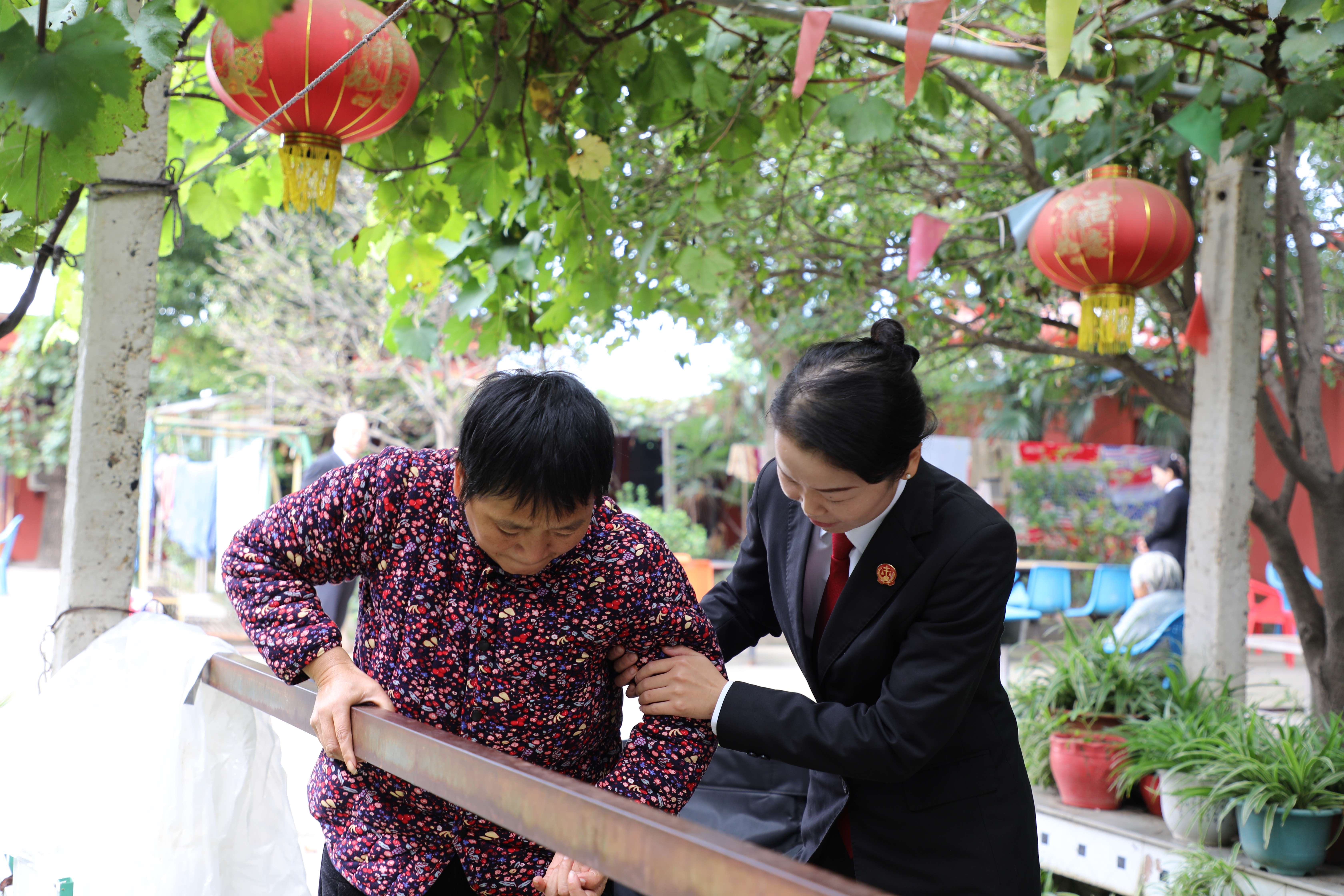 宣讲结束后,法院干警化身老人们的“临时子女”,开展了一场零距离的爱心服务。院子里,有的干警小心翼翼地推着轮椅,陪伴行动不便的老人散步、晒太阳;有的干警稳稳地搀扶着正在进行康复训练的老人,一边鼓励,一边协助他们一步步练习行走;有的干警帮助老人晾晒衣物,做一些力所能及的家务活……这一刻,他们不再是庄严的法官,而是老人们身边可亲、可靠的晚辈。欢声笑语在敬老院的各个角落回荡,温暖的画面定格在每一个真诚的互动瞬间。