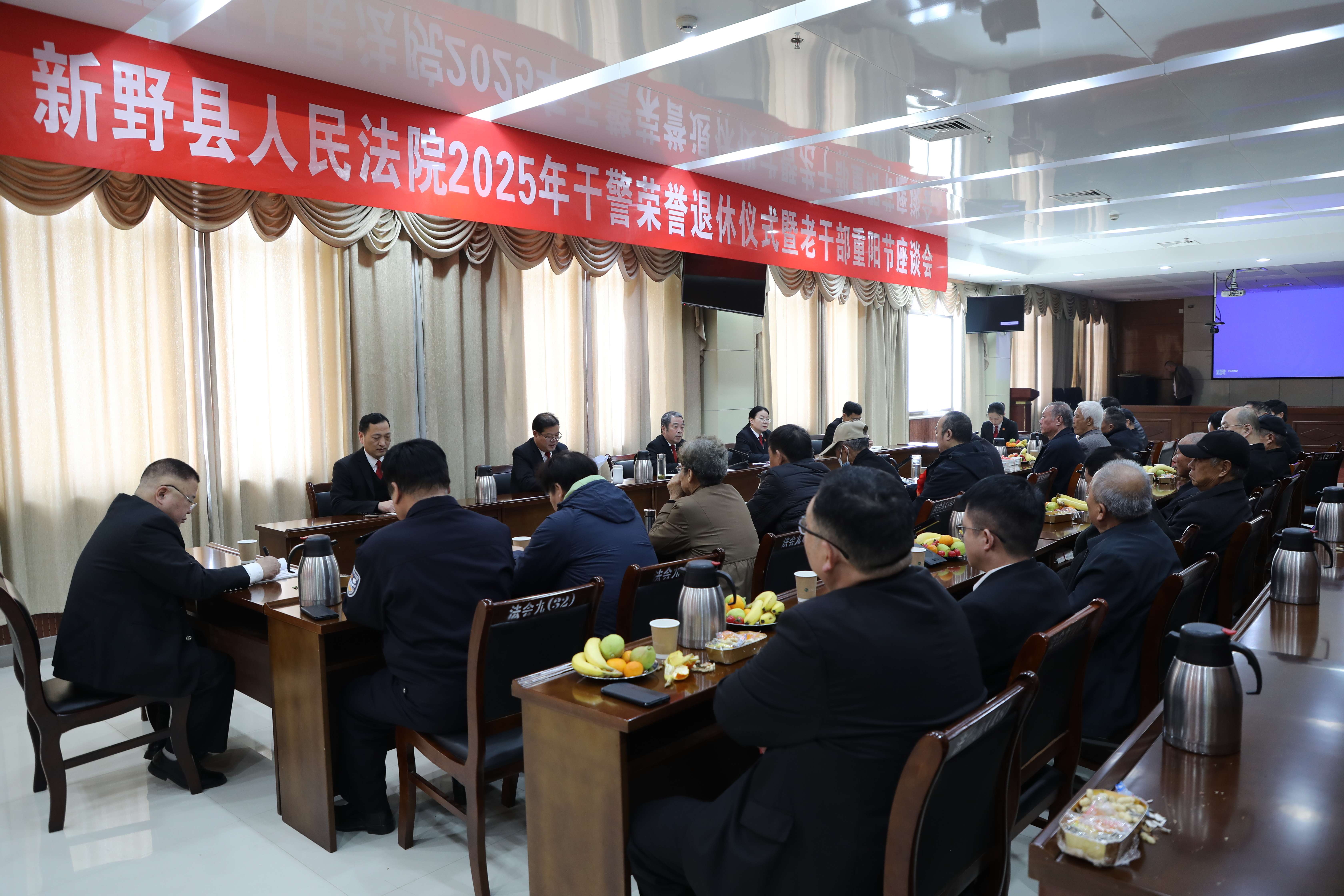 金菊送清芬,重阳敬老情。为弘扬中华民族尊老敬老传统美德,表达对退休干警的关怀与敬意,10月28日,在重阳佳节来临之际,河南省新野县人民法院盛情邀请30余名退休老同志参观人民法庭,并召开座谈会,共叙深厚情谊,共绘发展蓝图。