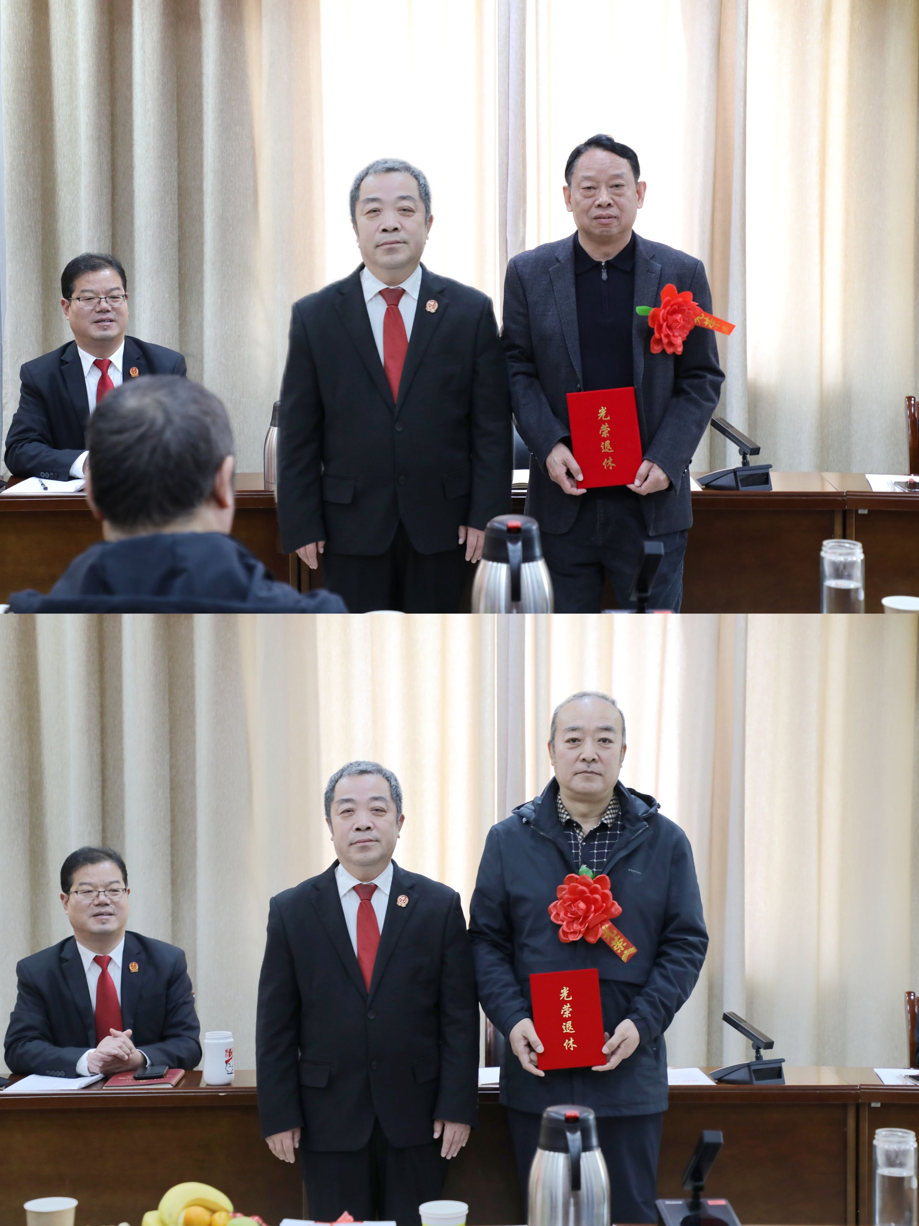 参观结束后,新野县法院召开了干警荣誉退休仪式暨老干部重阳节座谈会,院党组成员、副院长魏少永通报了2024年重阳节以来退休人员和新野县法院2024年以来的工作情况,院党组副书记、副院长王永清为2024年重阳节以来退休人员颁发荣誉退休证。证书颁发后,退休干部代表宋俊波、王利建,法院中层代表刑庭副庭长赵钦分别作交流发言。