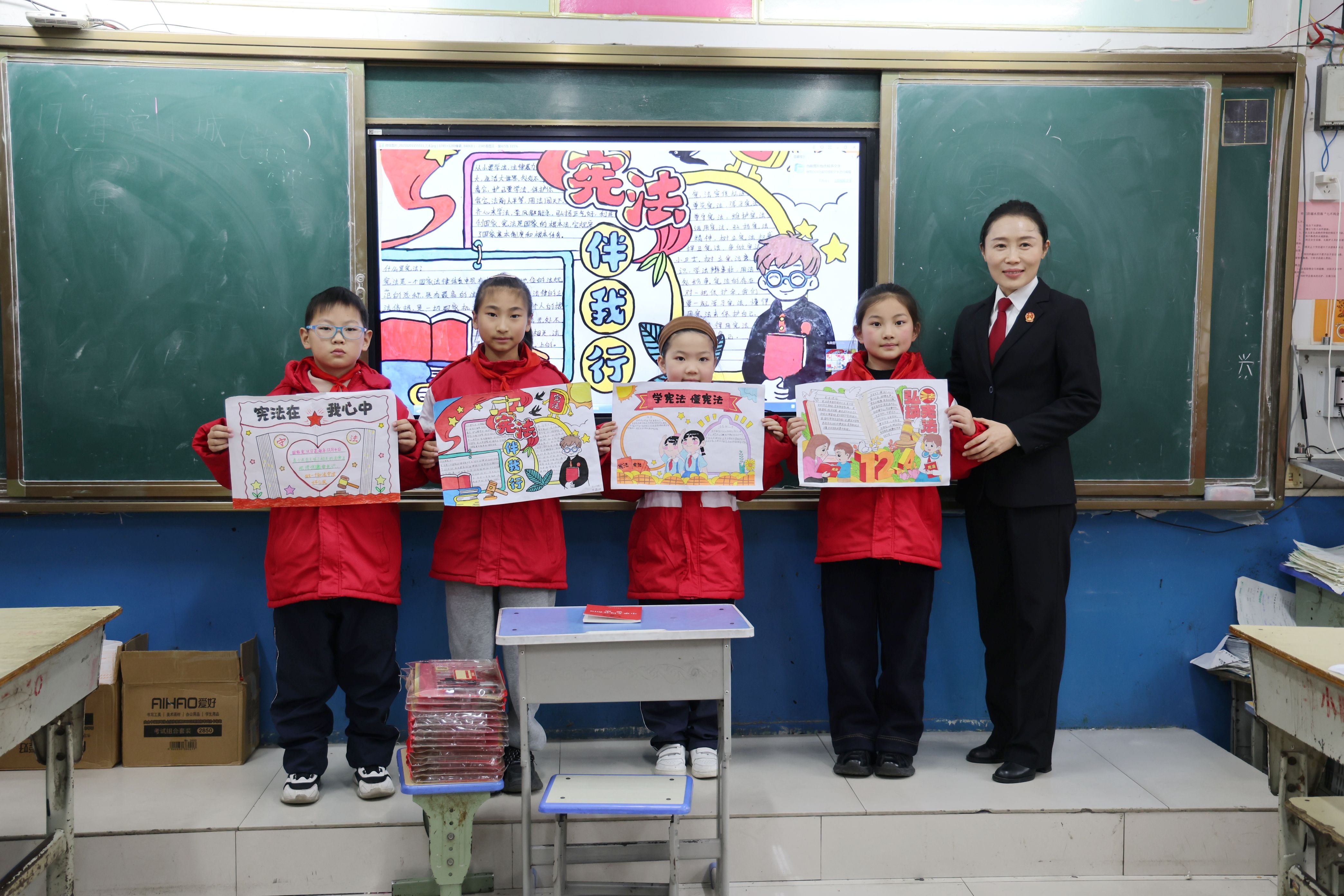 “你们知道我们国家的根本大法是什么吗?”“法官老师,我知道!是宪法!”课堂上,面对法官赵钦抛出的问题,同学们纷纷举起小手,一双双明亮的眼睛里满是求知的渴望。