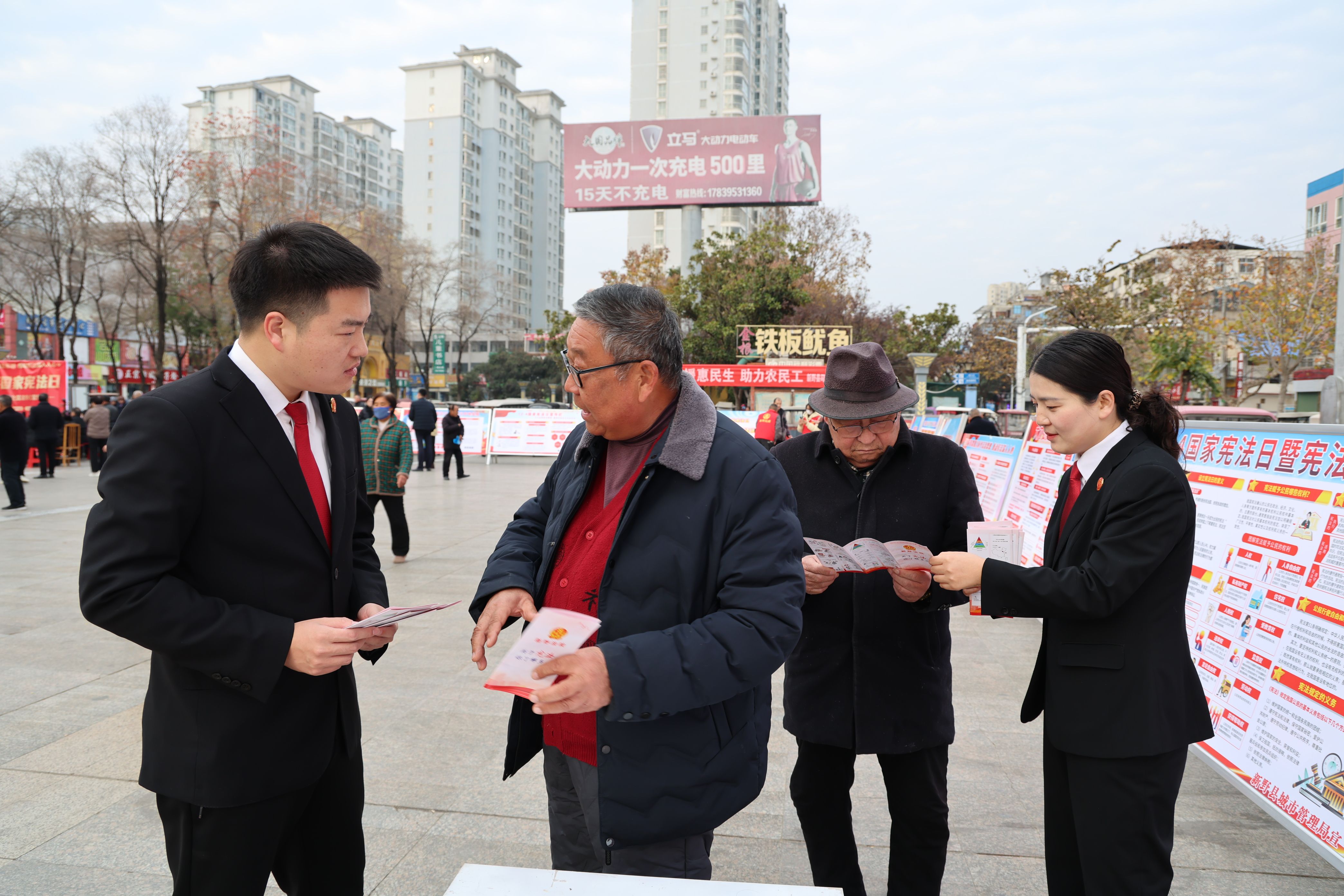 12月4日,在第十二个“国家宪法日”到来之际,河南省新野县人民法院组织干警在县文化广场开展宪法宣传活动,将法律知识送到群众身边,让宪法精神融入群众生活。