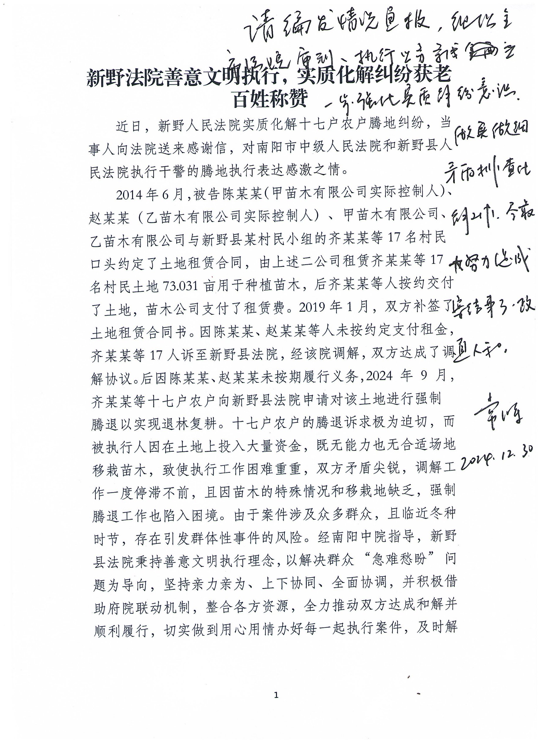 新野法院善意文明执行,实质化解纠纷获老百姓称赞
