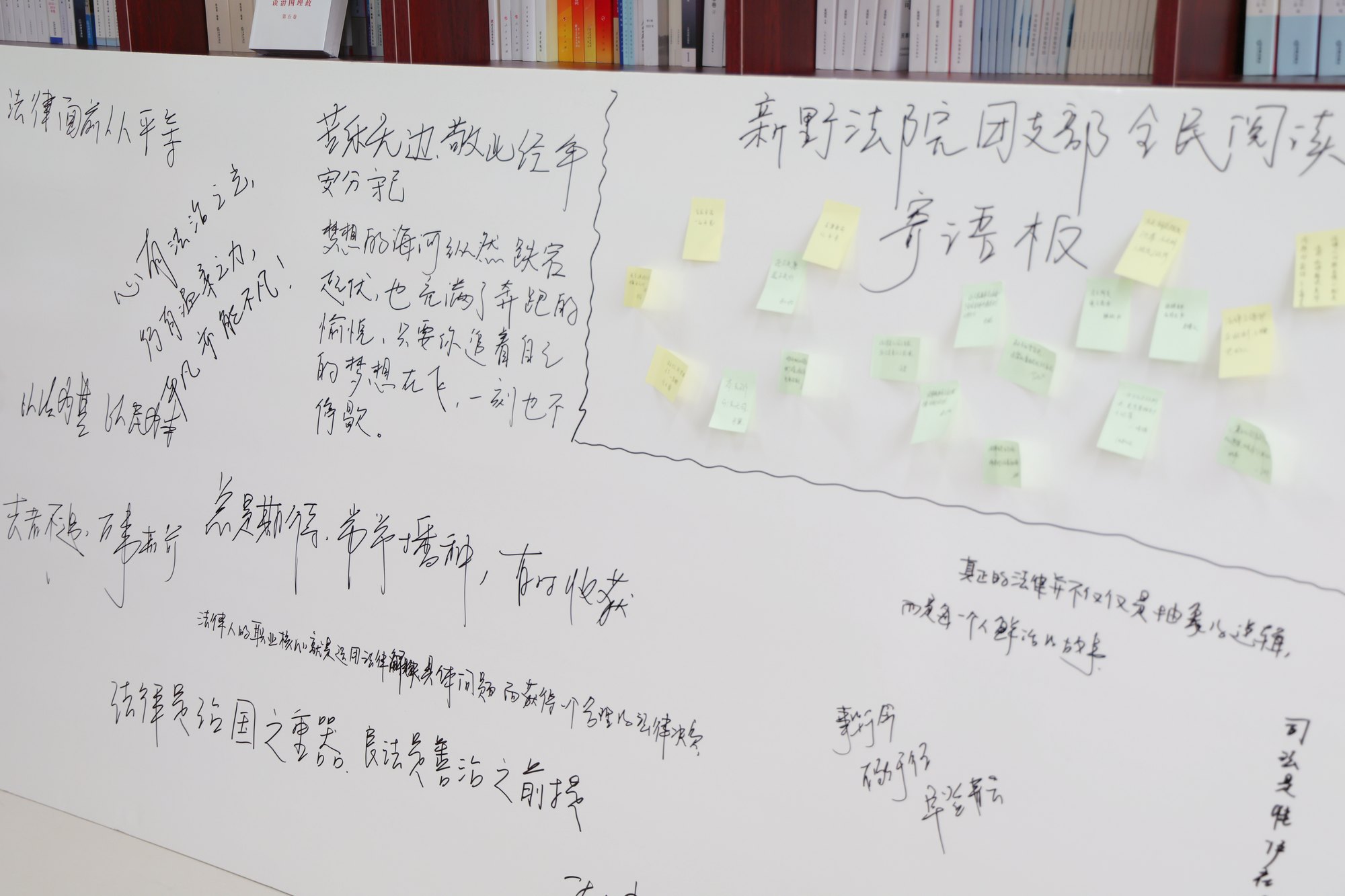 活动最后,青年干警代表在寄语板上郑重地写下自己的读书感言和工作誓言。青年干警们纷纷表示,要将阅读作为一种生活方式和精神追求,坚持在阅读中坚定理想信念、提升业务能力、涵养浩然正气,将学习成果转化为服务大局、司法为民、公正司法的生动实践,为推进书香社会建设贡献青春力量。